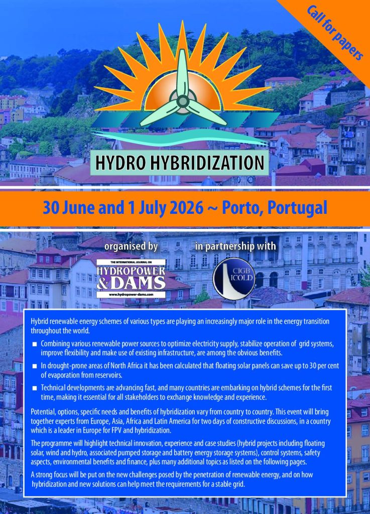 The Hydro Hybridization 2026 conference will take place in Porto, Portugal, from June 30 to July 1, 2026, focusing on integrating hydropower with other renewable sources. Organized by ICOLD CIGB, the event addresses climate change adaptation, combining solar/wind with pumped storage to ensure energy stability.